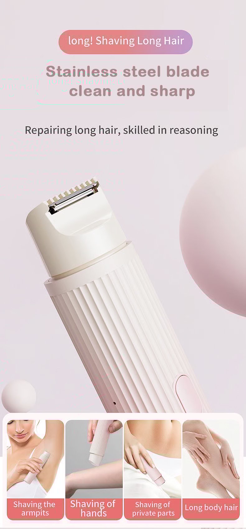 Dual Head FunctionalityThe dual head design offers effortless trimming and shaving, making it perfect for delicate areas like the bikini line, underarms, and legs.